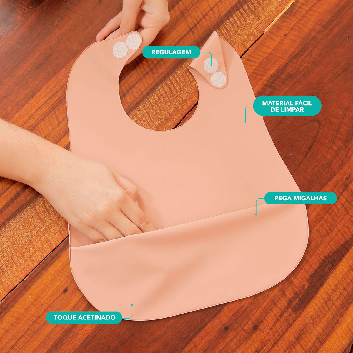 Os babadores impermeáveis com bolso porta migalhas, da Beniq, com regulagem, são perfeitos evitar sujeiras durante as refeições, mantendo o bebê confortável, além de serem lindos, práticos, leves e seguros