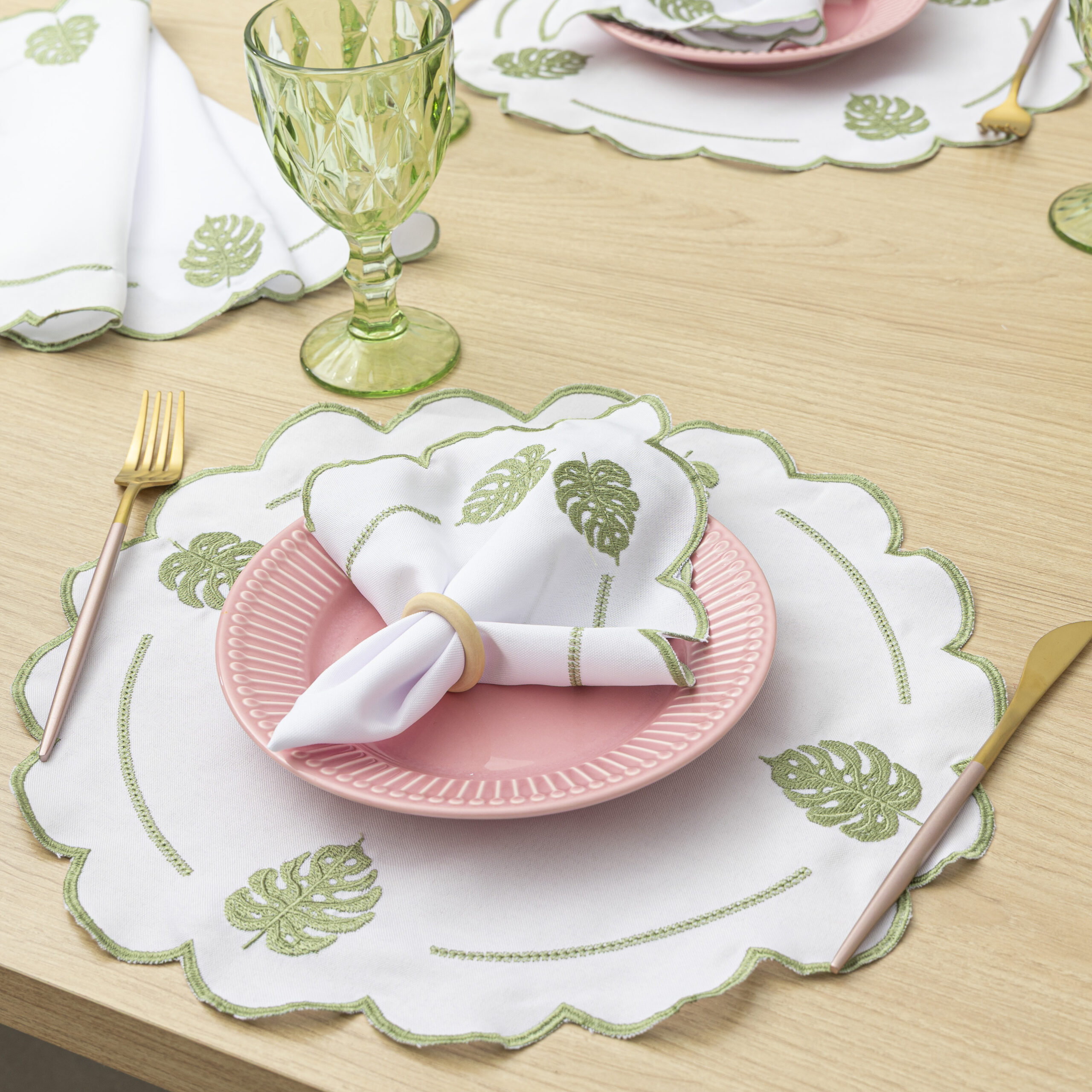 Kit mesa posta com bordado Costela de Adão 24Pçs, ideal para 12 lugares — elegância que transforma qualquer refeição.
